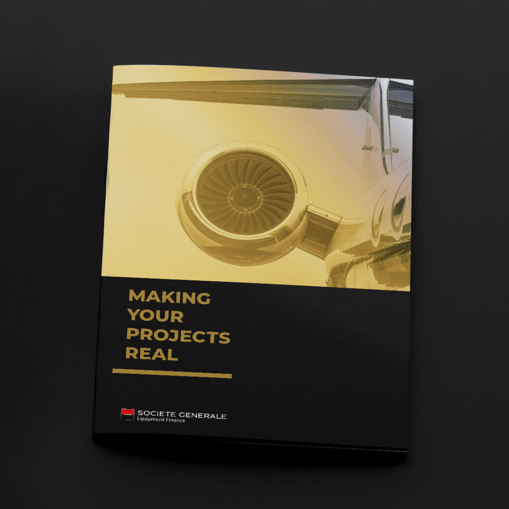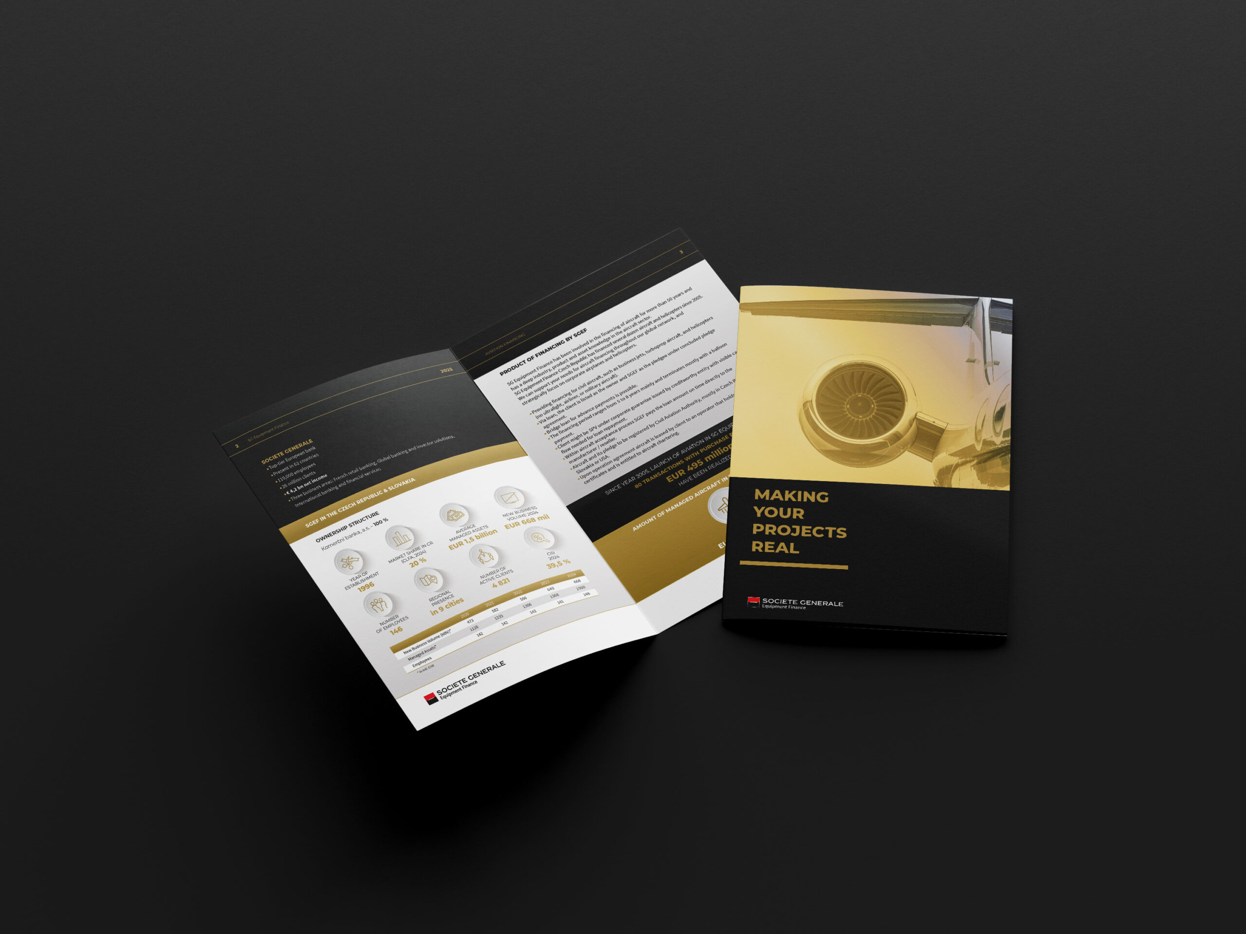 Grafický návrh a sazba firemní brožury pro společnost specializující se mimo jiné na financování business jetů, vrtulníků a turbovrtulových letadel.