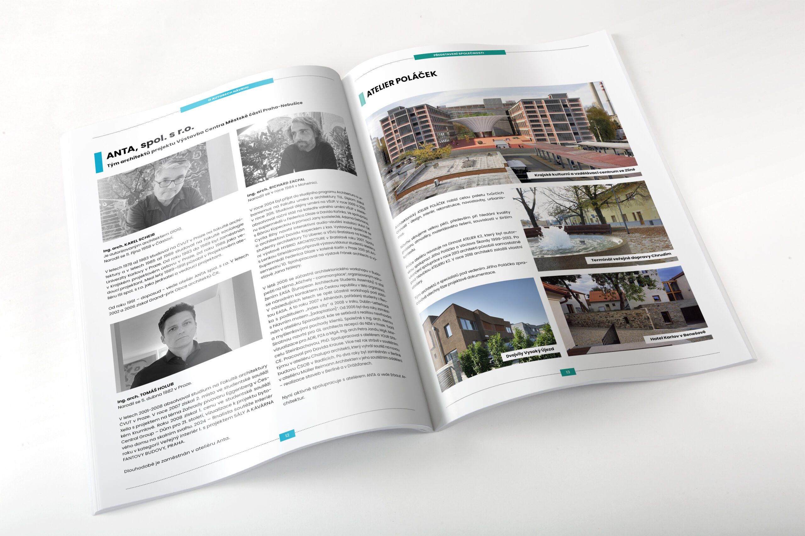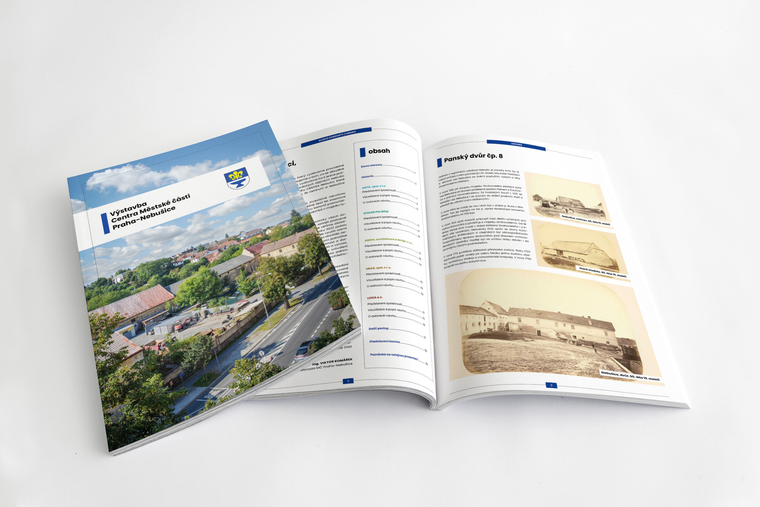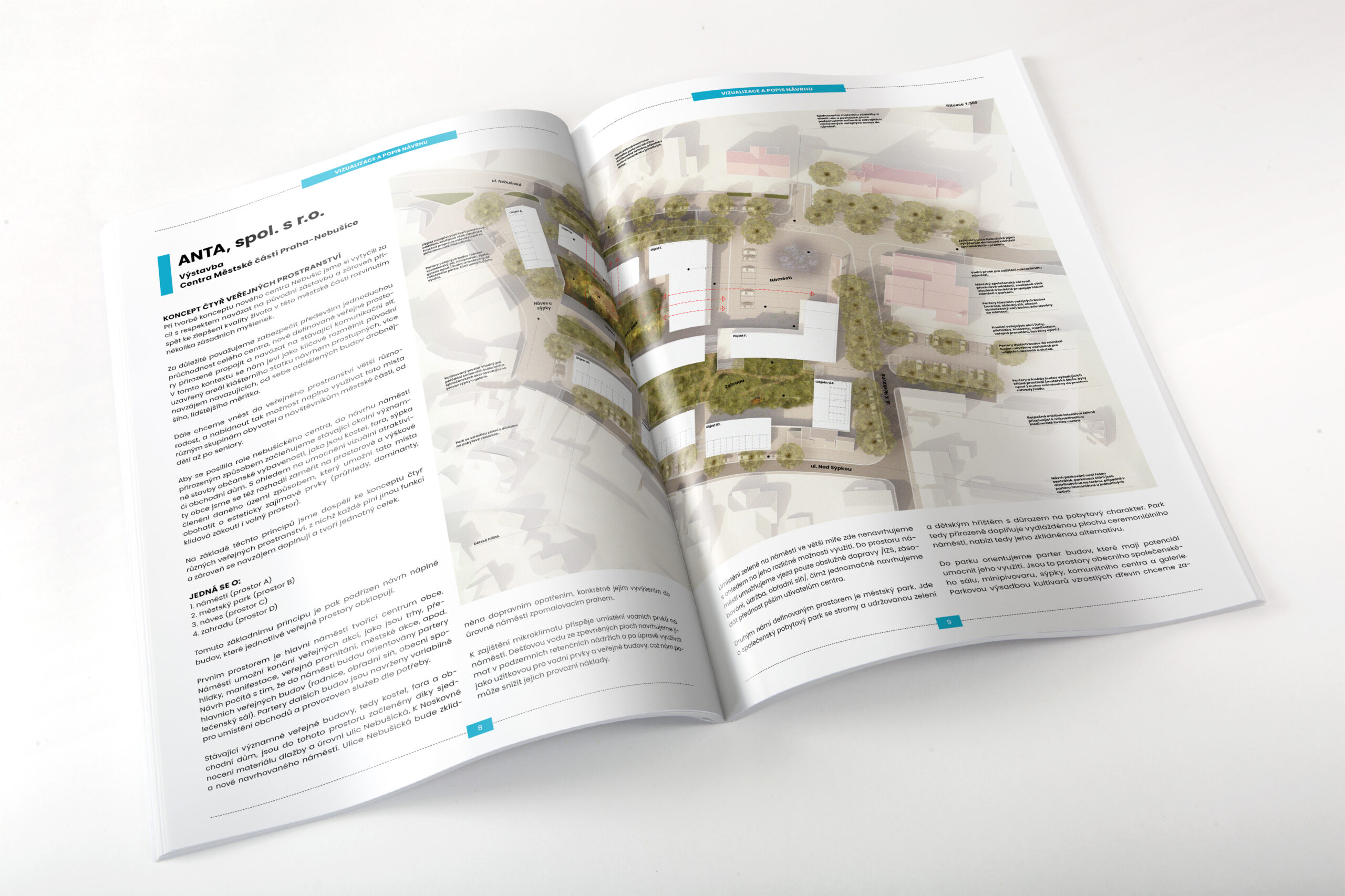 Časopis navržený k příležitosti architektonické soutěže o novou výstavbu centra Nebušic.